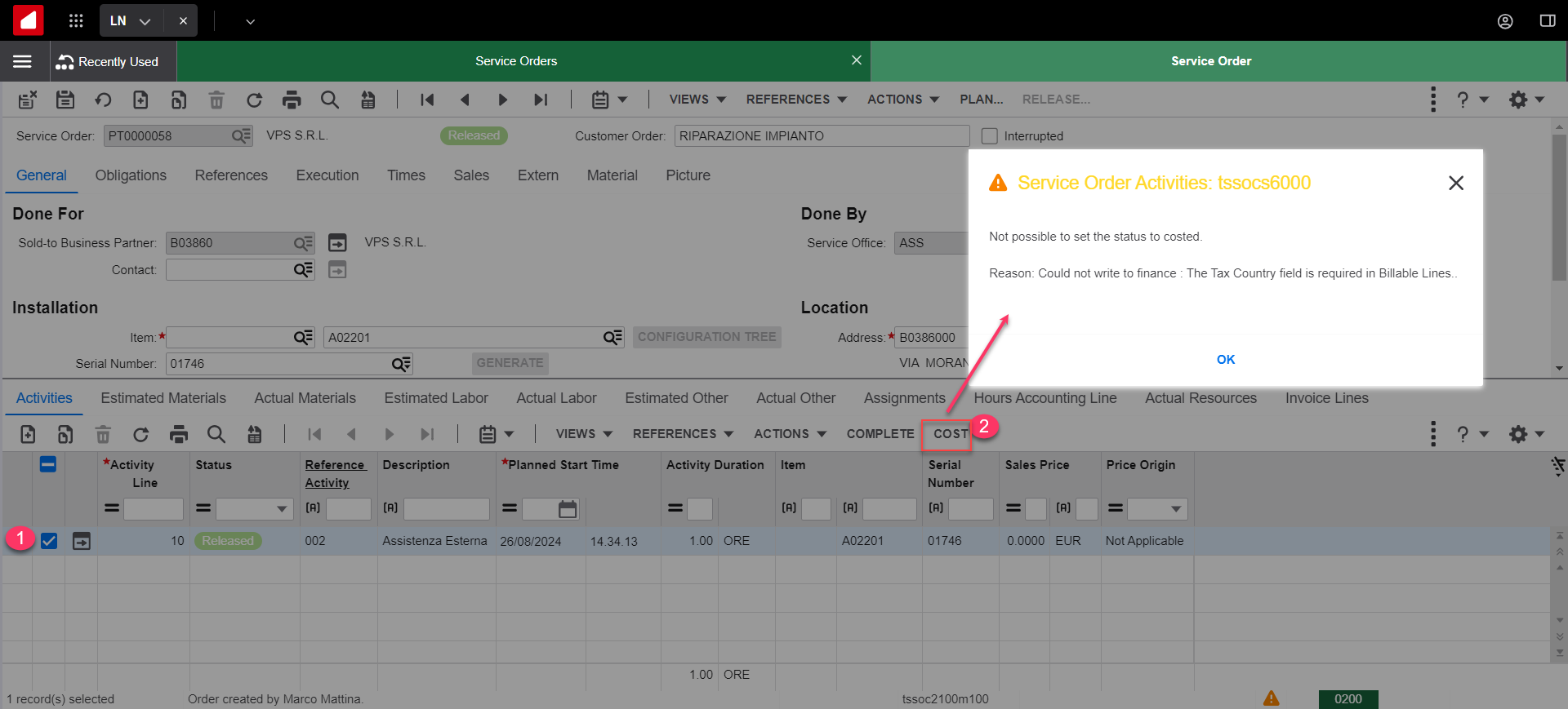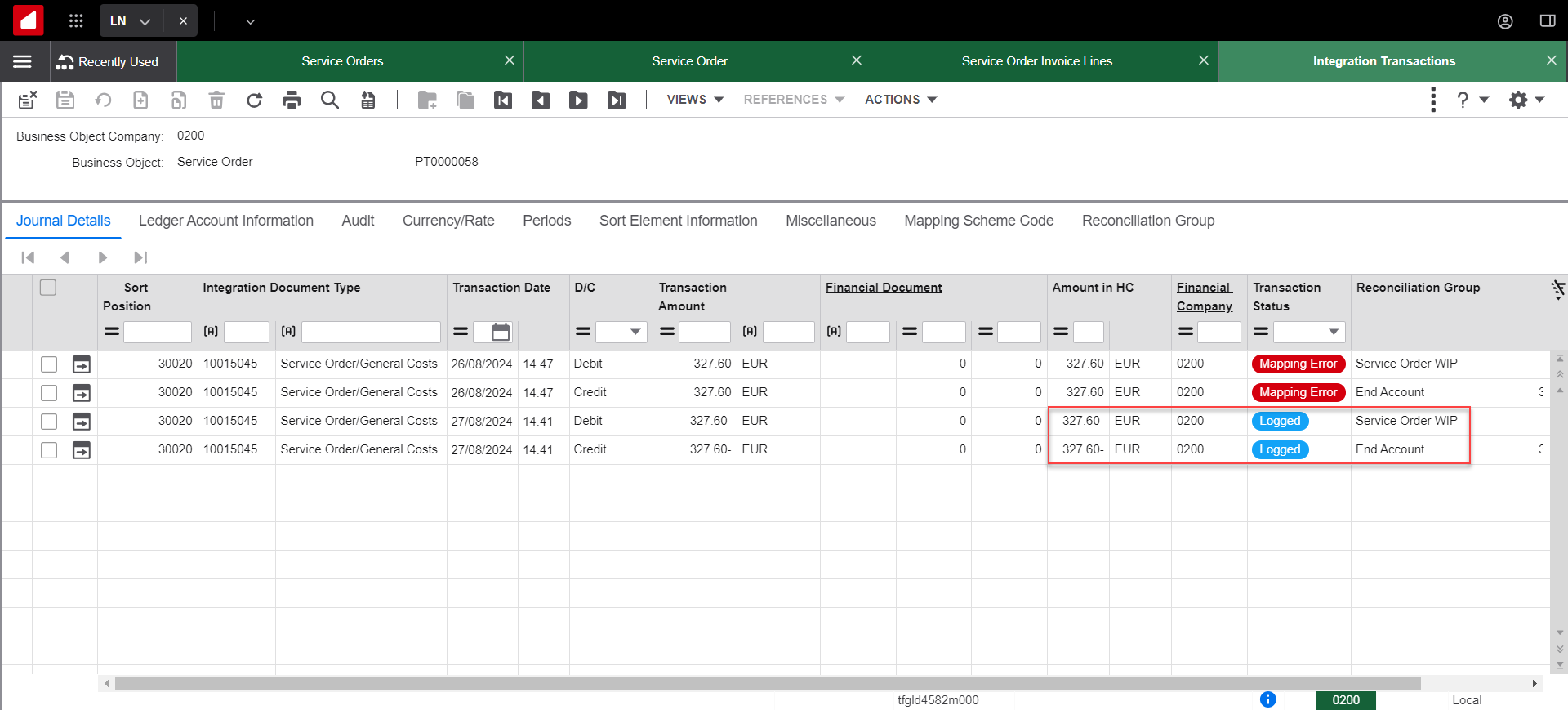 La riga di Travelling non era stata eliminata in modo "normale". Prima di essere eliminata, è stato cambiato il Tipo di costo da Travelling in Other. In questo modo è possibile cancellare la riga anche se con quantità e importo valorizzati (al contrario di quanto accade con la riga di Travelling, per cui è necessario azzerare la quantità) e non si vengono a creare nuove transazioni di integrazioni.